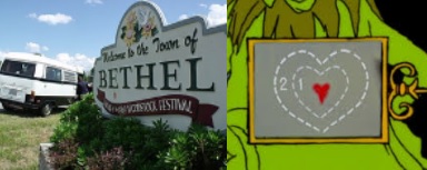 And what happened to the townfolk of Bethel? Well, with their plans overblown, the food ran out the first day. In the hours after the festival started, and the area facing a half million of starving people, they formed assembly lines putting together sandwiches for the crowds. They opened their pantrys and sent any canned goods they could spare. (The U.S. Army had to help also, flying in by helicopter food and medical supplies) They did not want all of these crazy hippies coming. On the other hand, they were not going to let a disaster unfold on their watch. After all, these were other people's kids. In the years since they mellowed. Maybe....just maybe....Woodstock was a good thing. In 1984, on the 15th anniversary, they erected a plaque in the spot where the festival took place. Then in 2006, they erected a full festival area where Rock concerts can take place every weekend from spring until fall. They erected a Museum housing artifacts of that great event. Why, just like the Grinch, there hearts grew three sizes. |