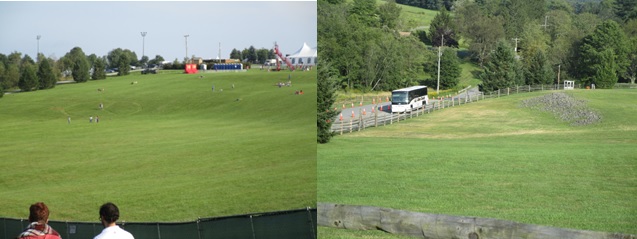 The modern festival site is at the top of the hill, where original attendee's had their tents/campsites staked out. The actual original hill and stage area are preserved as an historical site. In fact it was declared a historic site just recently in 2016 on the National Register of Historic Places. The spot where the stage was is marked out. There are rocks in front of it. The Woodstock monument is to the right of the stage. Coming to the hill and stage area, where all of those people sat and artists played, was way more important and satisfying then seeing any of the current artists. It didn't matter who was playing, I was here to experience the atmosphere of 1969. Equally true for meeting and talking to the several people who attended the original. There is a peace sign cut in the grass in the middle of the hill. Hard to see in these photos. I spent a good hour walking around the hill, stage area and monument. I stood on the stage area about the same spot as the performers would have been playing to the crowds so many years ago. |